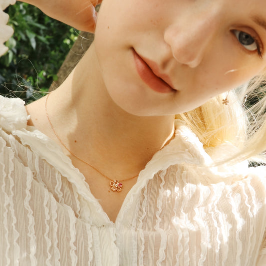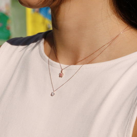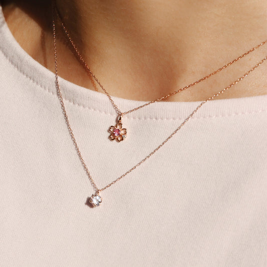 10 Karat Pink Gold Color Stone Sakura Necklace|60-9409-9413