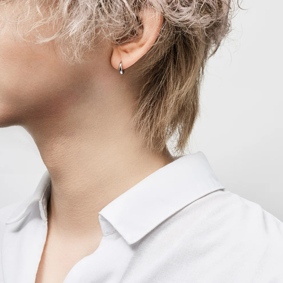 Silver hoop earrings that accent your outfit.