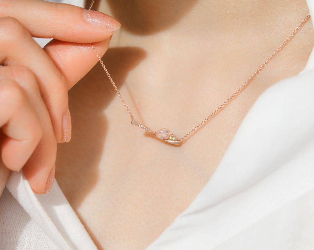 10 Karat Pink Gold Rose Quartz Sakura Necklace | 63-0857