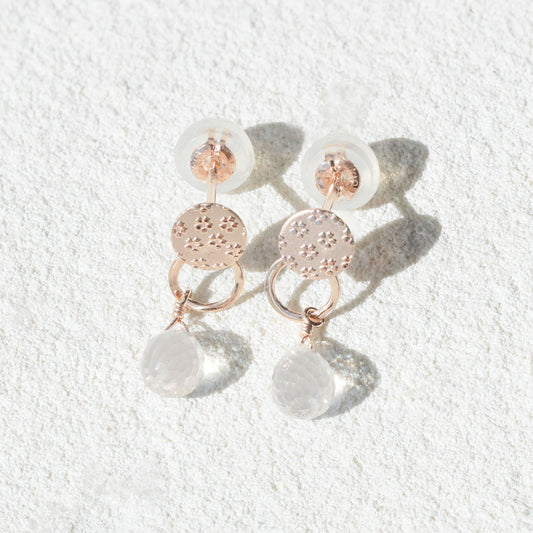 10 Karat Pink Gold Rose Quartz Sakura Earrings |43-1019
