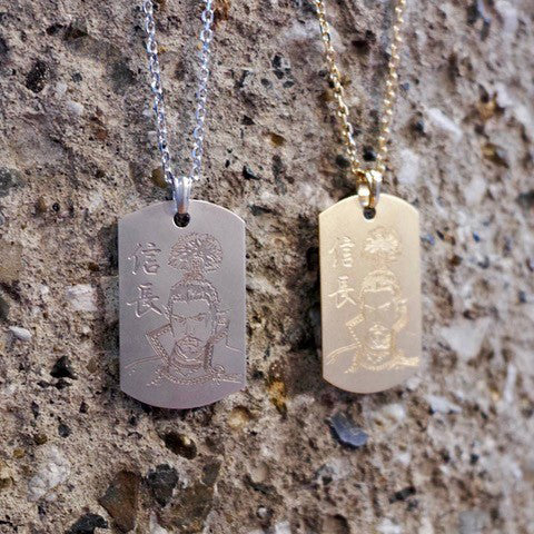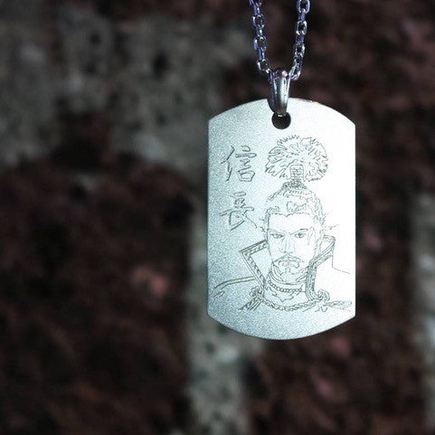 These are special silver necklaces featuring artwork from the Nobunaga Oda Series beautifully engraved onto pendants.