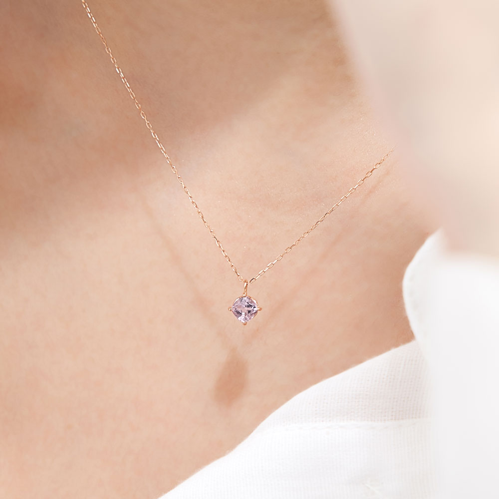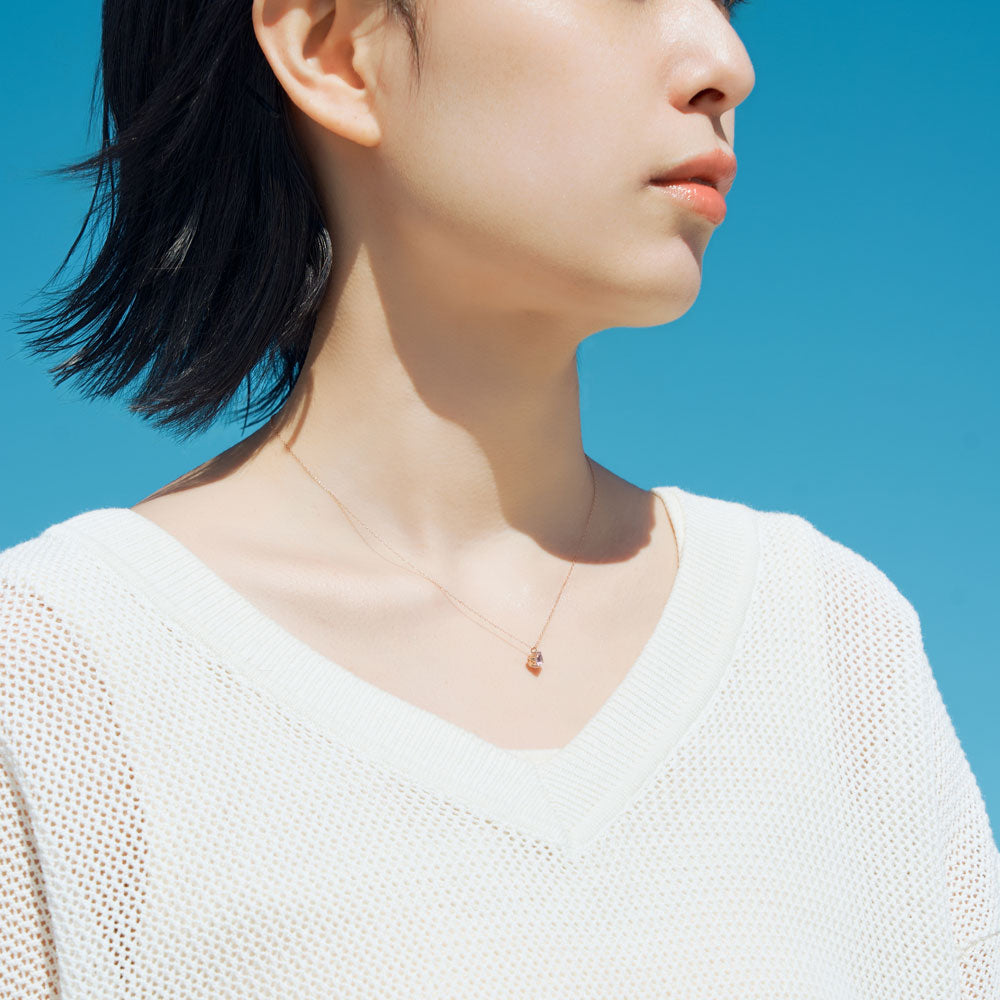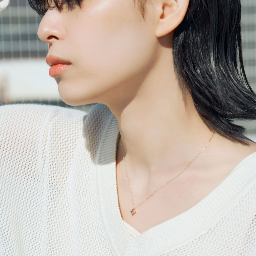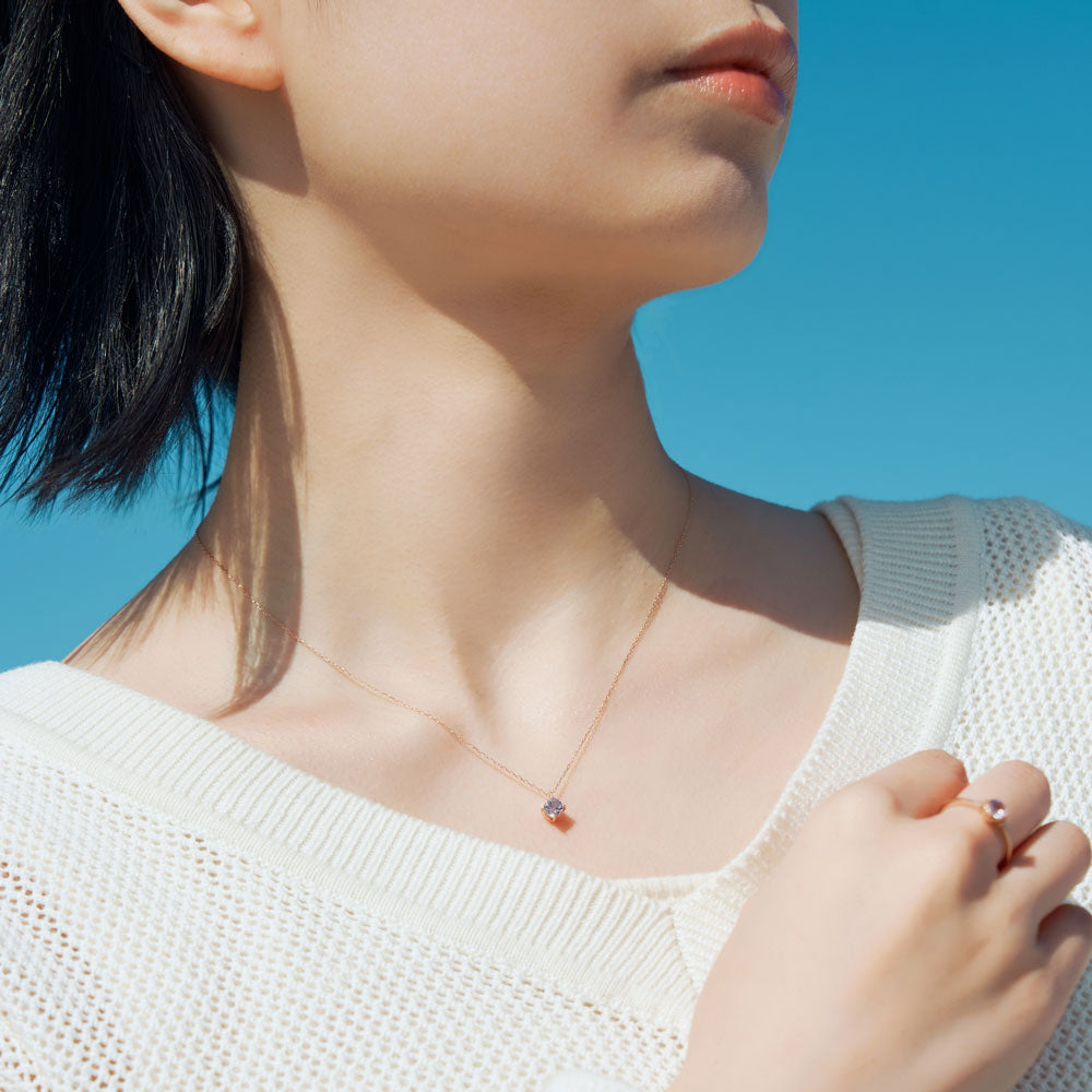 The pale pink light amethyst reflects the momentary ephemerality and eternal beauty shown by cherry blossoms. The shine of K10 pink gold adds a high-quality and calm impression.